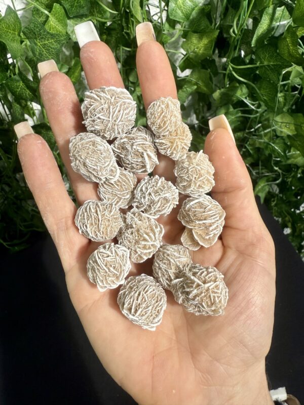 Discover one of nature’s most intriguing mineral treasures with the Mini Desert Rose, a delicate crystal formation born from the elements of arid deserts. Each Mini Desert Rose, also known as gypsum rose, selenite rose, or sand rose, is created as water evaporates from mineral-rich sand, leaving behind intricate, bladed clusters that resemble the petals of a blooming desert flower.