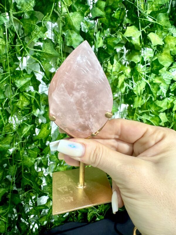 Rose Quartz Flame on Stand – Heartfelt Elegance and Calming Energy